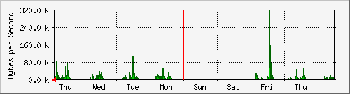 | Max In: | 318.7 kB/s (25.5%) | Average In: | 1981.0 B/s (0.2%) | Current In: | 366.0 B/s (0.0%) | ||