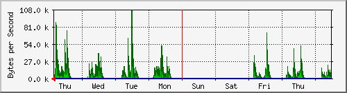 | Max In: | 107.7 kB/s (8.6%) | Average In: | 1855.0 B/s (0.1%) | Current In: | 371.0 B/s (0.0%) | ||
